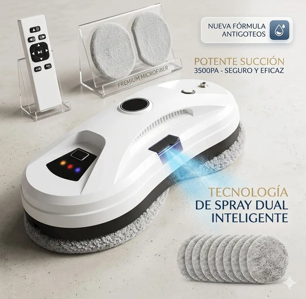 Ahorro de Tiempo: Ponés el robot a trabajar y te olvidás; él te avisa con un pitido cuando terminó de dejar el vidrio brillante.
